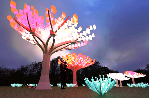 Entwined’s forest of illuminated color will once again light up Golden Gate Park’s Peacock Meadow this winter. “Entwined,” by San Francisco artist Charles Gadeken, creates a whimsical wonderland where visitors can explore twisting paths, colorful trees, large flowering clusters, and constantly changing vistas of light. Inspired by nature, this interactive art installation will enchant visitors of all ages from December 1 through March 12, 2023.