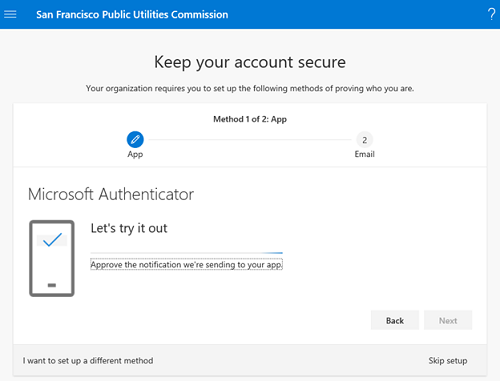 To protect your SFPUC User Credentials, the Multi-Factor Authentication (MFA) registration process and changes to your security information must be completed within a SFPUC location directly connected to our private network. The MFA process enables us to safeguard sensitive information, transactions and internal announcements intended for SFPUC employees only.